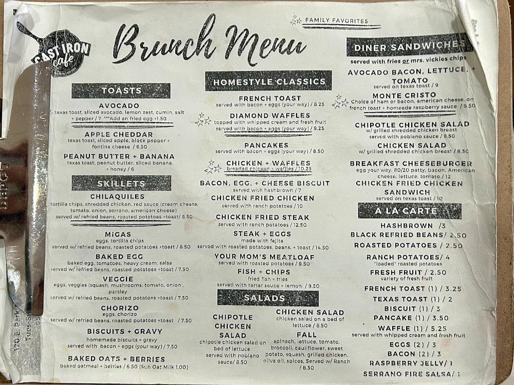 Cast Iron Cafe offers a diverse menu that reflects traditional breakfast and brunch comfort food. Signature dishes include chicken fried steak, pancakes, and a variety of skillets packed with flavors. Breakfast classics feature homemade items like French toast and waffles.